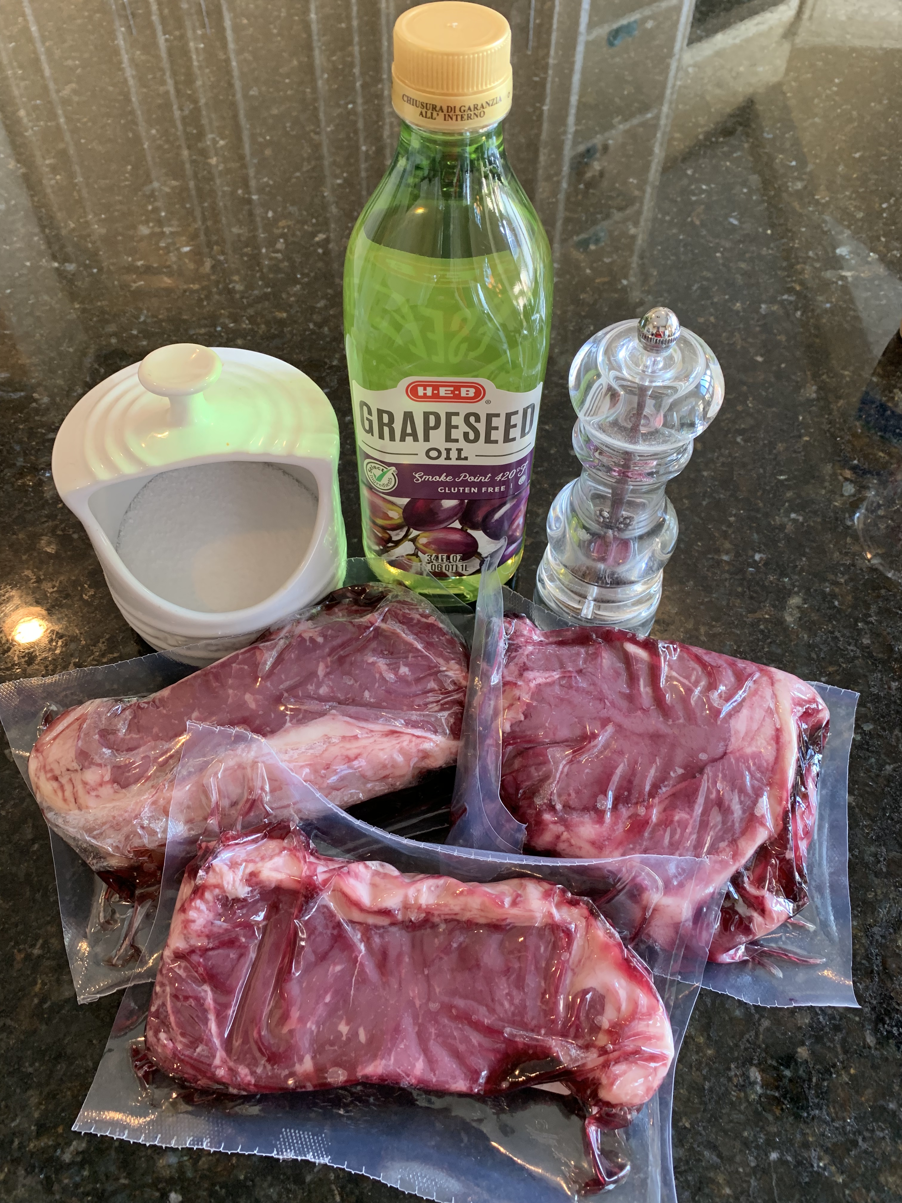 • Beef steaks of your choice (we used Strip Steak)