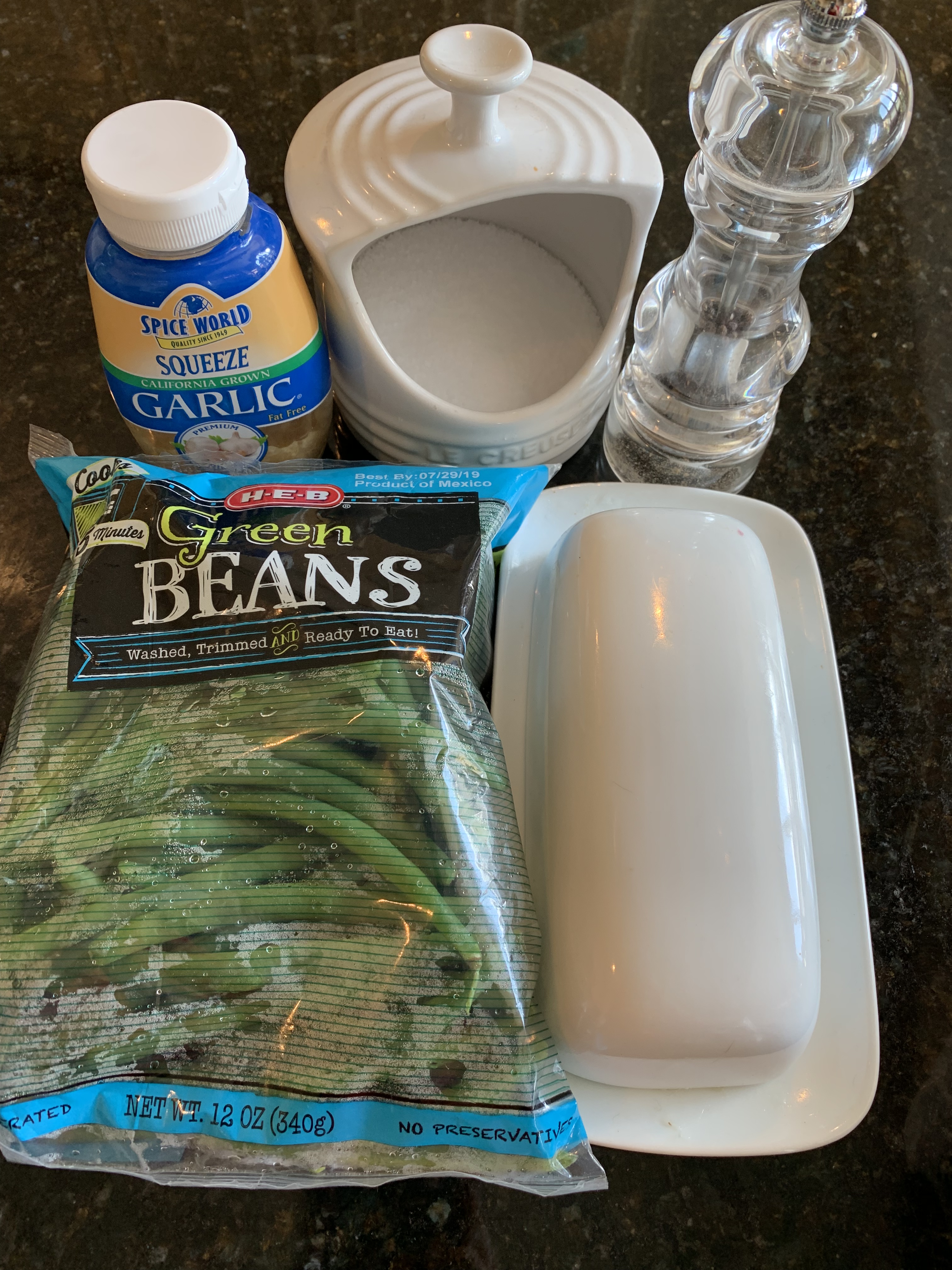 • 1 Bag of fresh green beans (the bag will indicate whether it can be steamed in the microwave)
