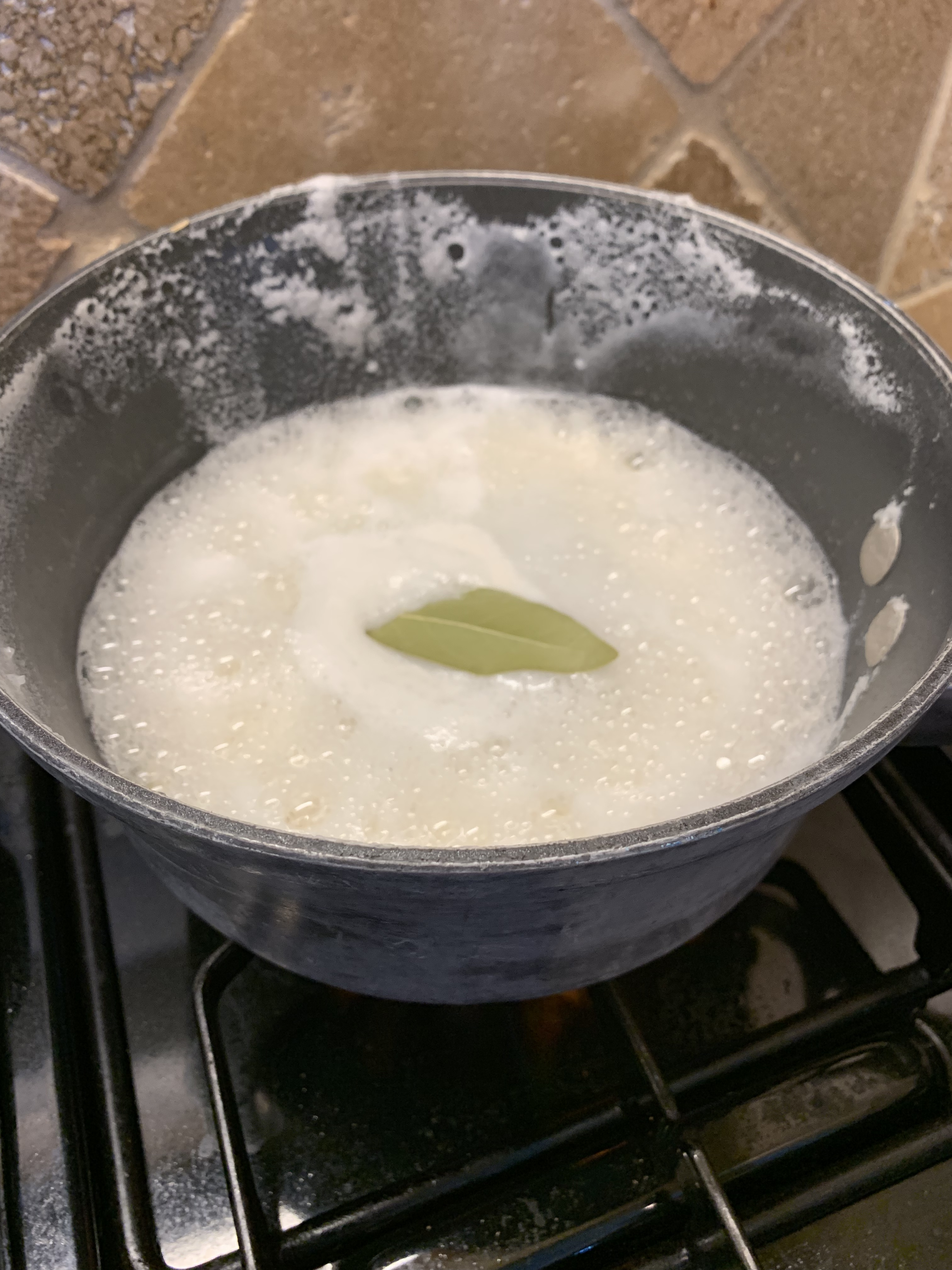 Remove from heat, remove bay leaf.