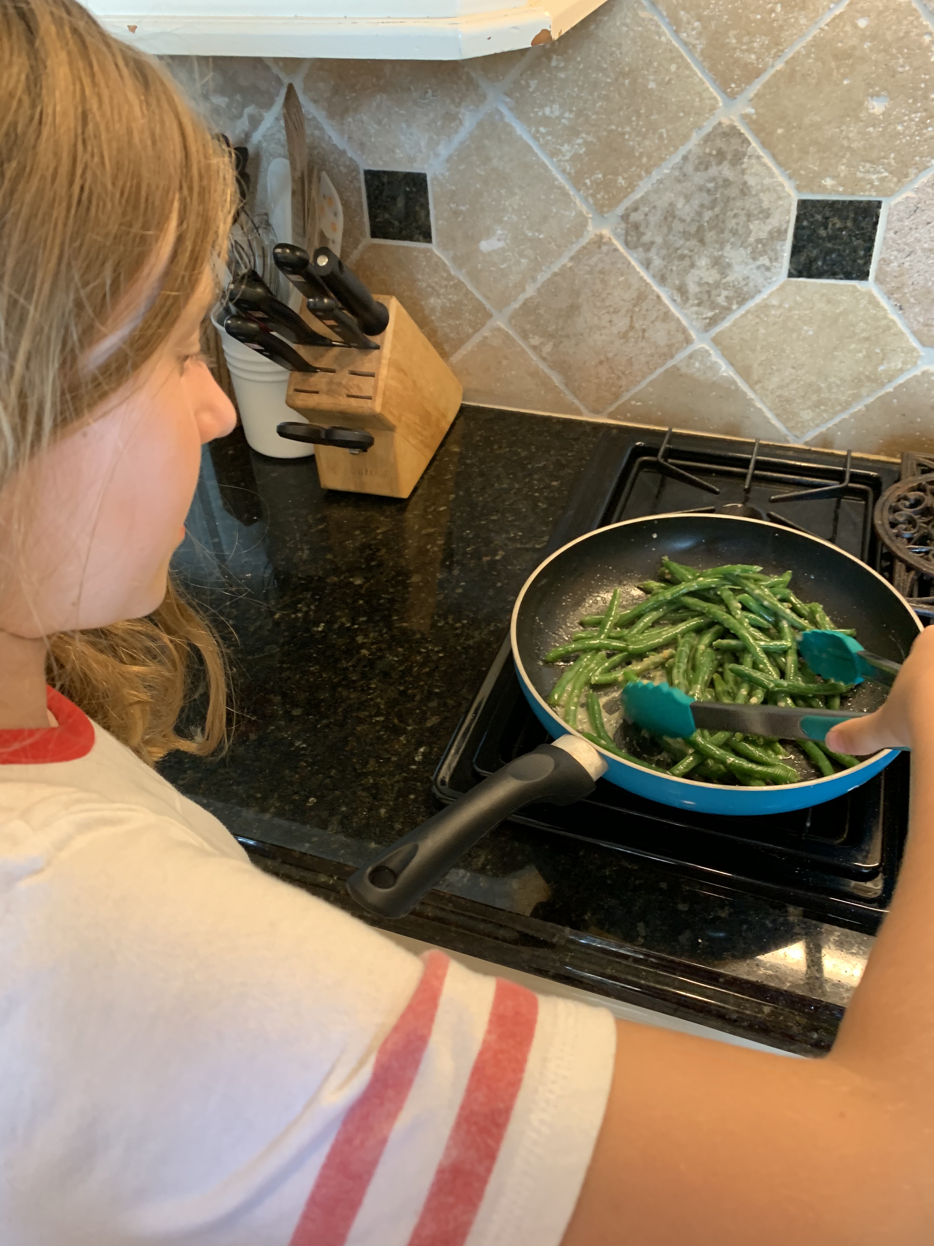 Luke and George were the main cooks last night, but Evie swooped in near the end to help with quick preparation of the green beans. Let me go ahead and tease you with the fact that dinner was delicious and everyone pretty much cleared their plates!