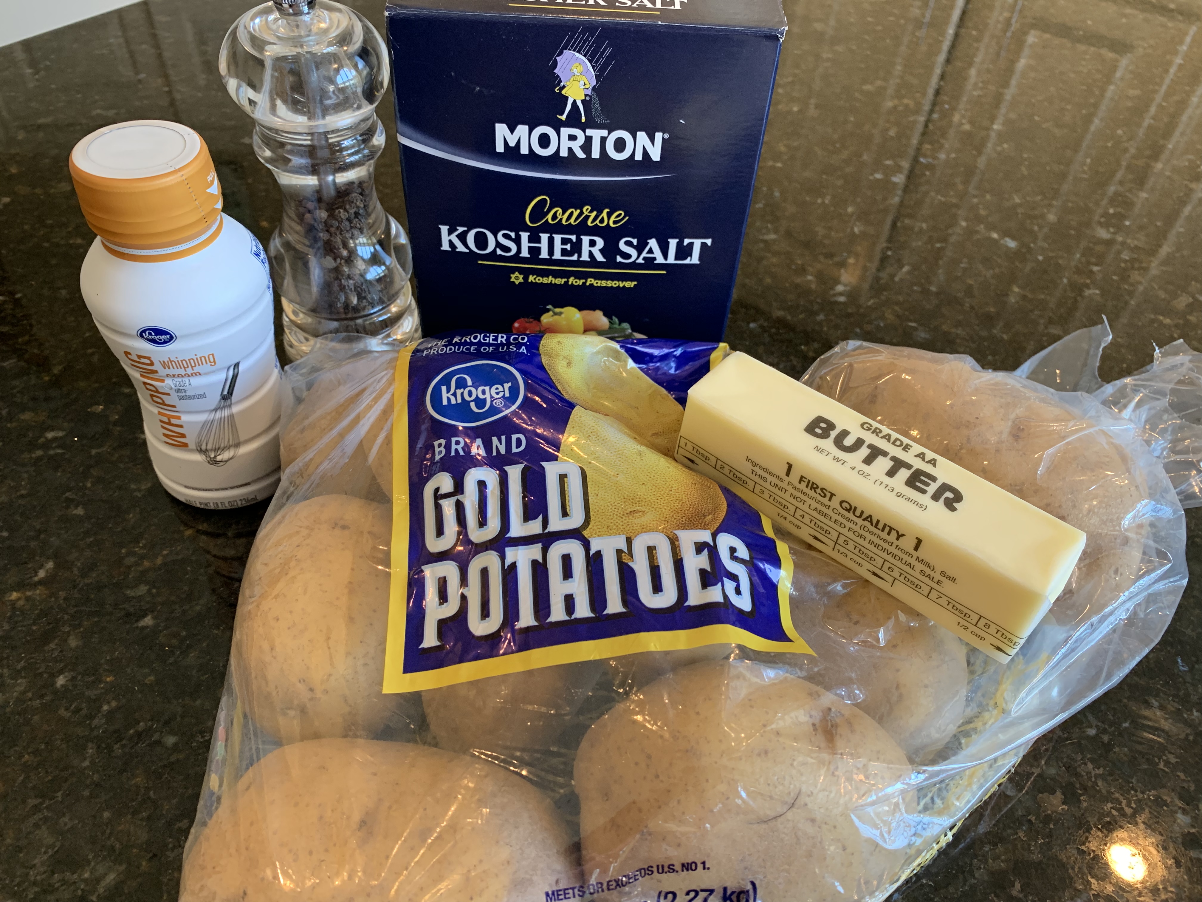 Ingredients: Yukon Gold Potatoes, butter, whipping cream, salt and pepper.