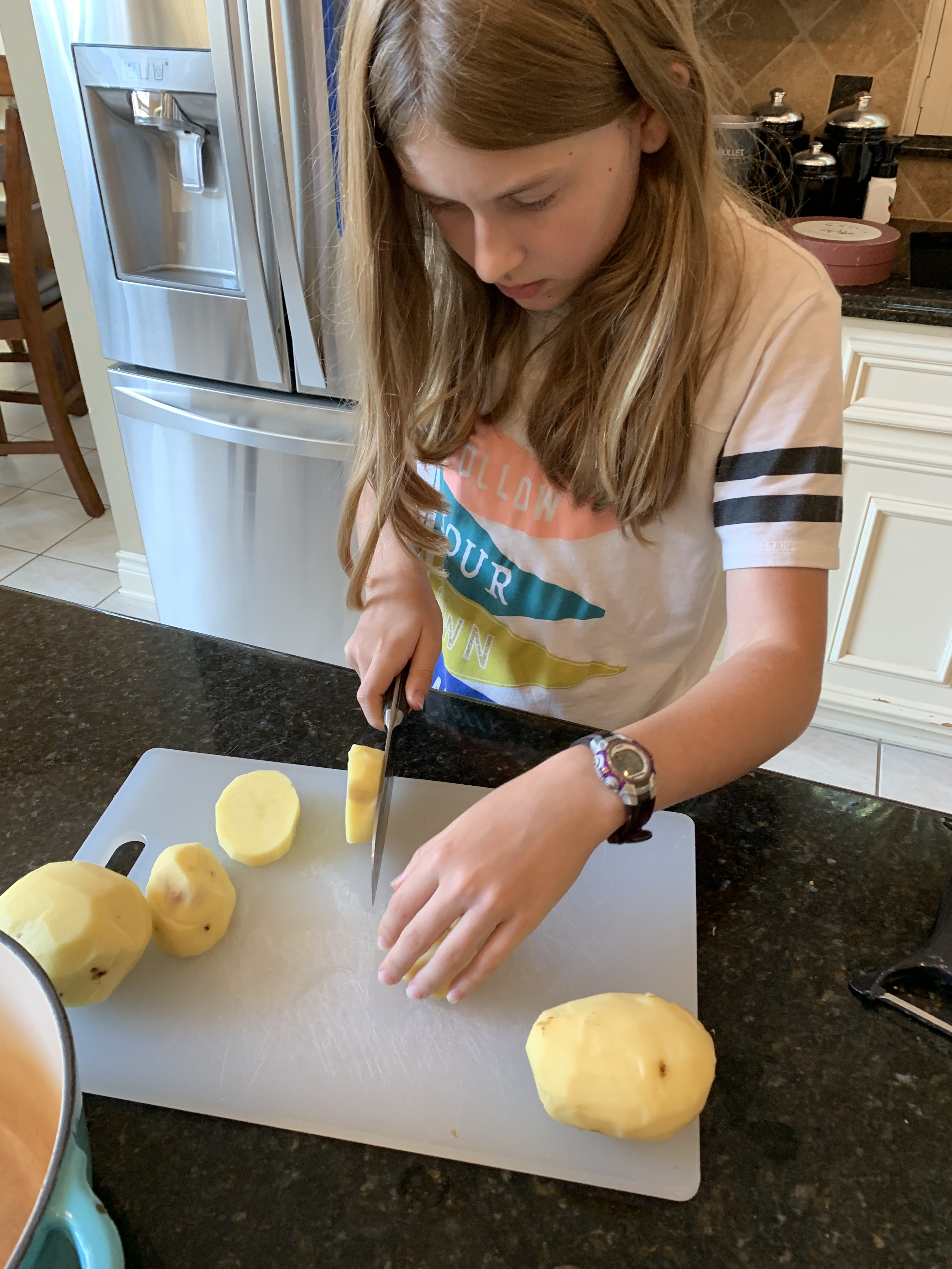 Evie dicing potatoes