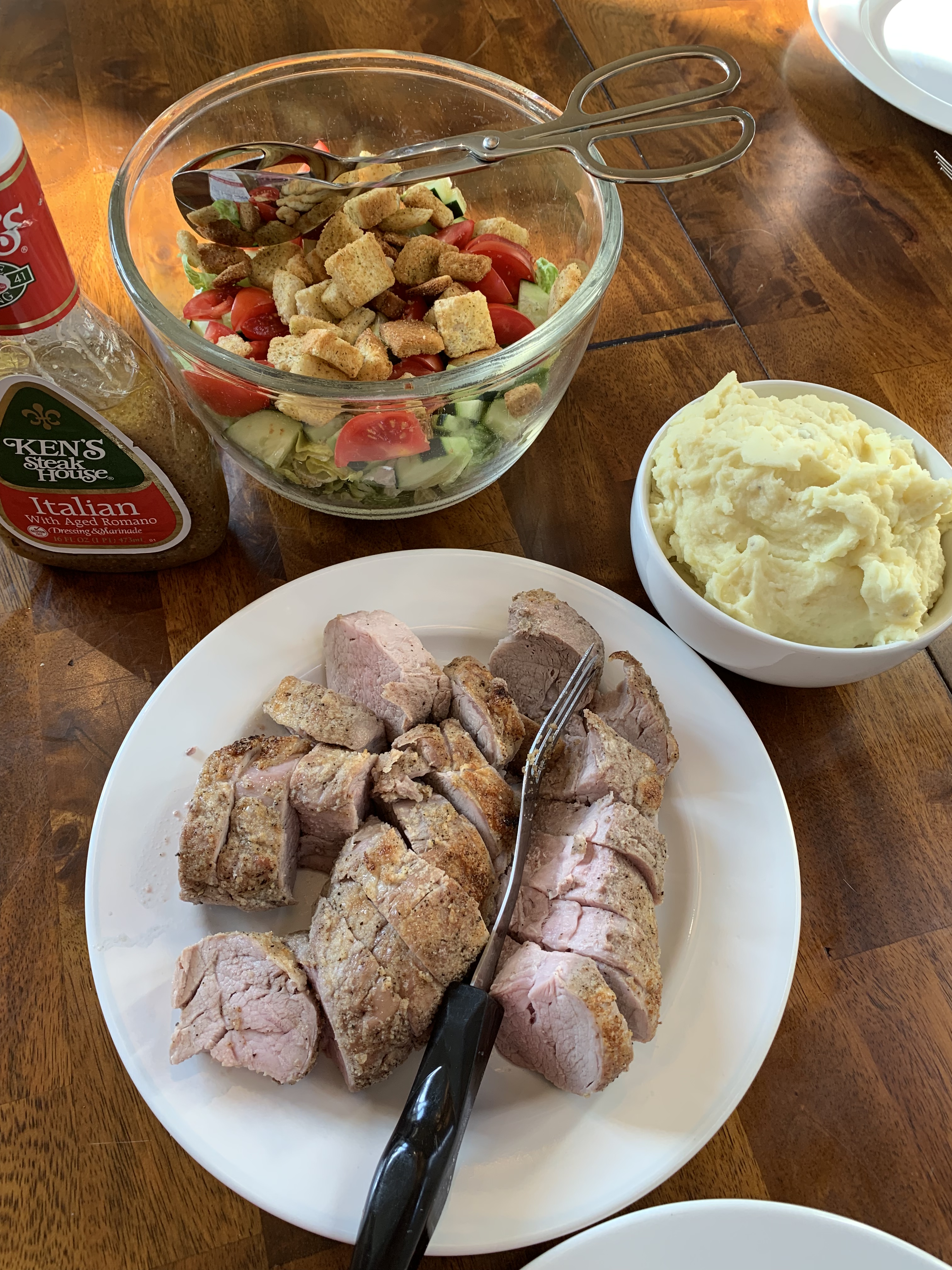 Served our mashed potatoes along side the perfect pork tenderloin and a salad.