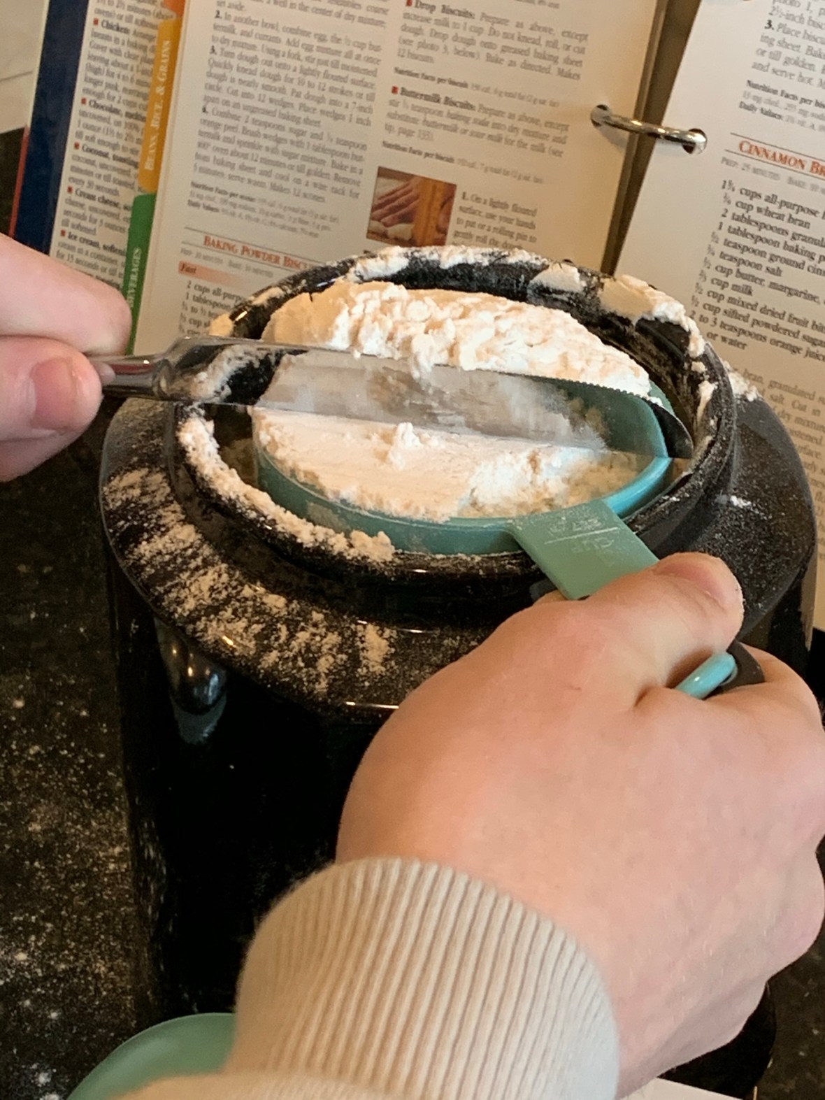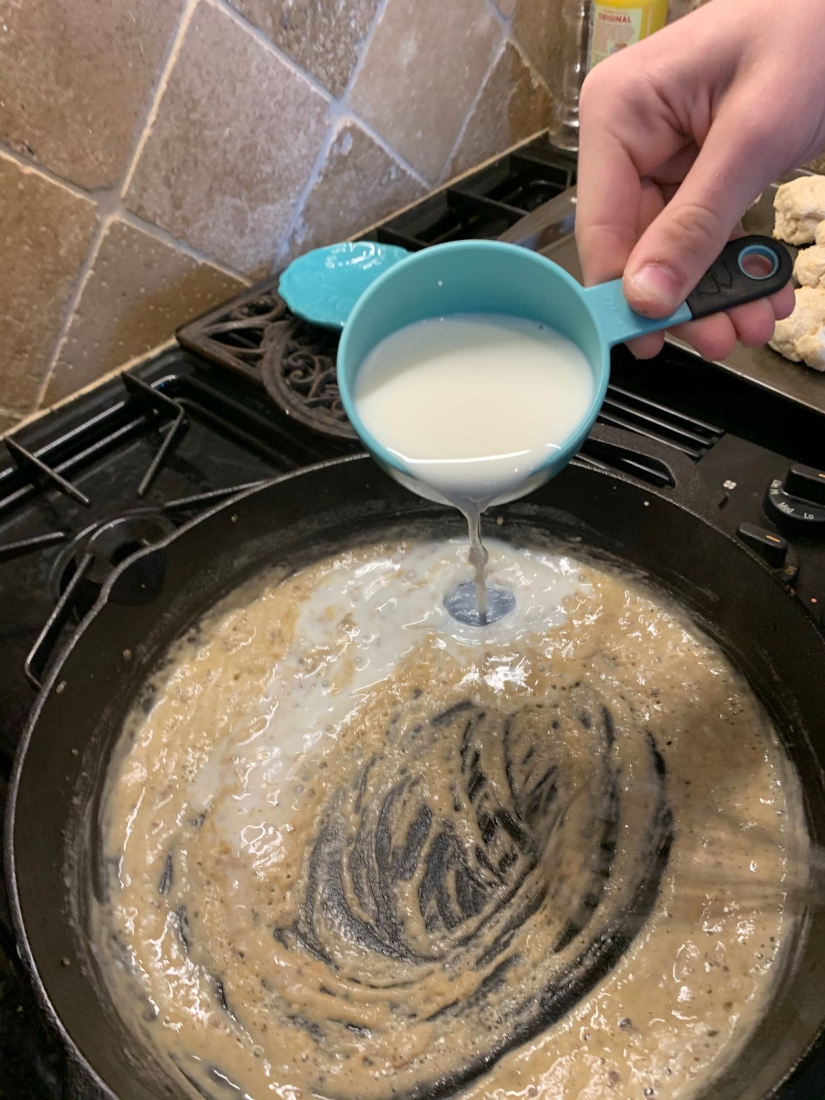 Luke wanted to make breakfast this morning so we looked at our list of Recipes 4 Growing up and decided to make biscuits and gravy. Luckily, I had all the ingredients!