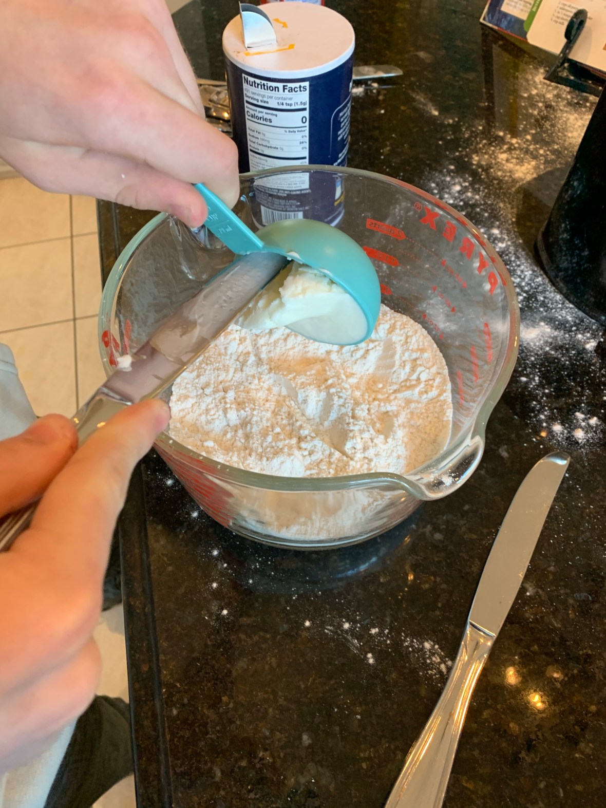 1. Mix together flour, baking powder, and salt.