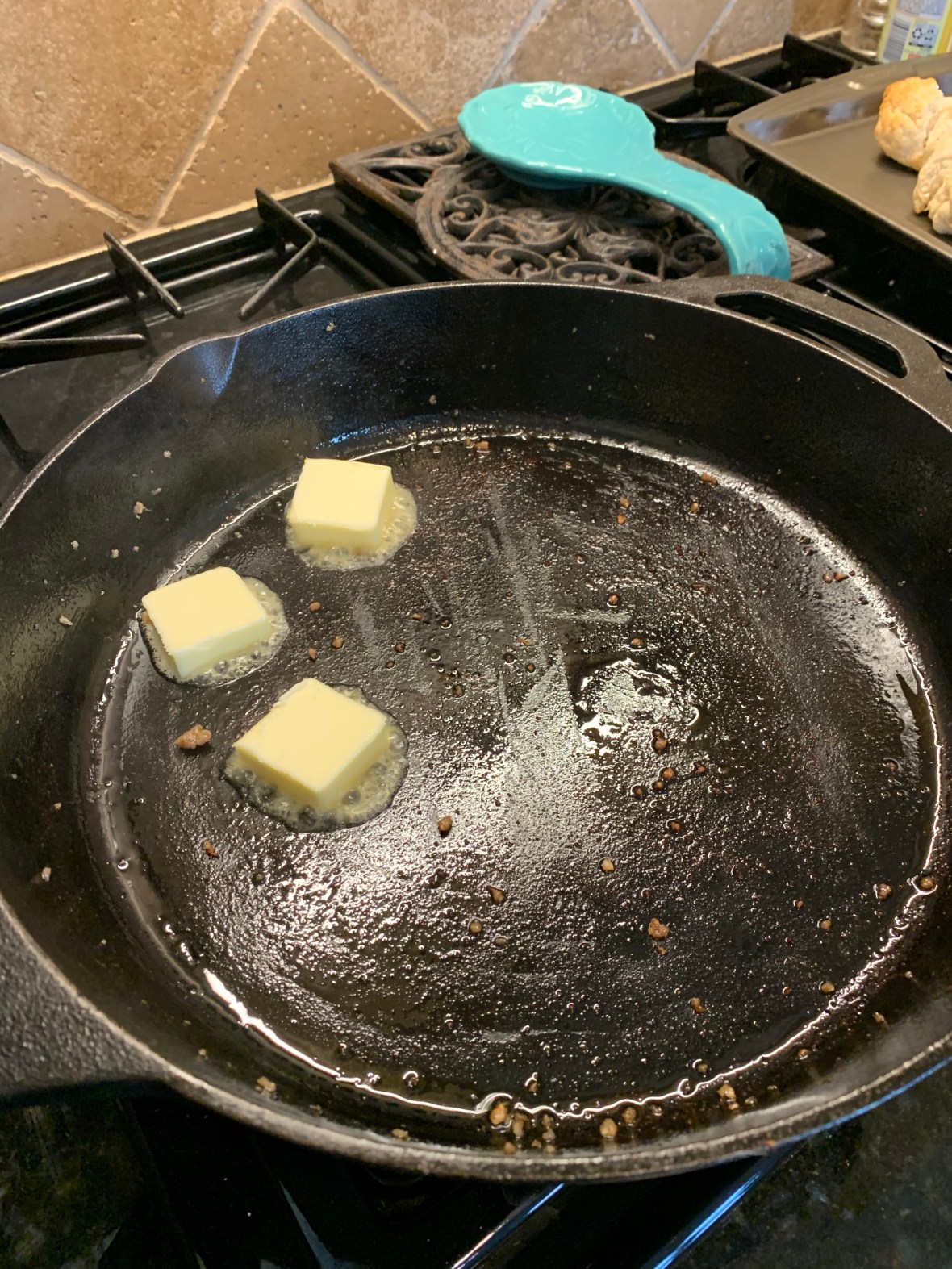 2. Heat skillet to medium high and heat butter until melted.